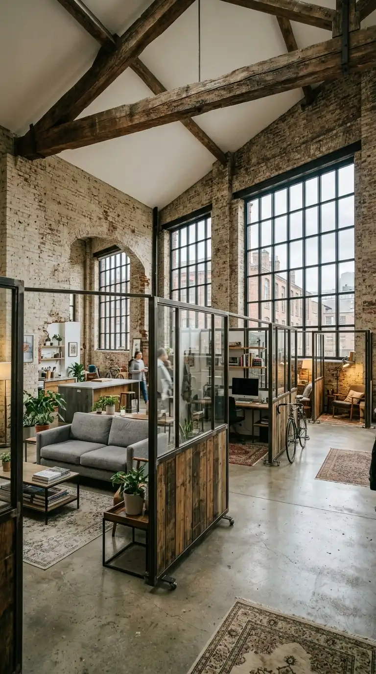 - Preserve original windows, columns, beams, and brick walls.