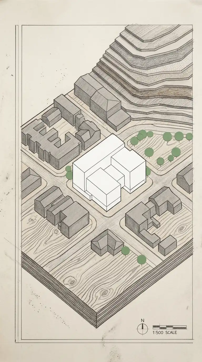 This model type is for site analysis, landscape architecture, and projects where the land is the primary subject. The emotional effect is layered, topographical, and site-specific.
