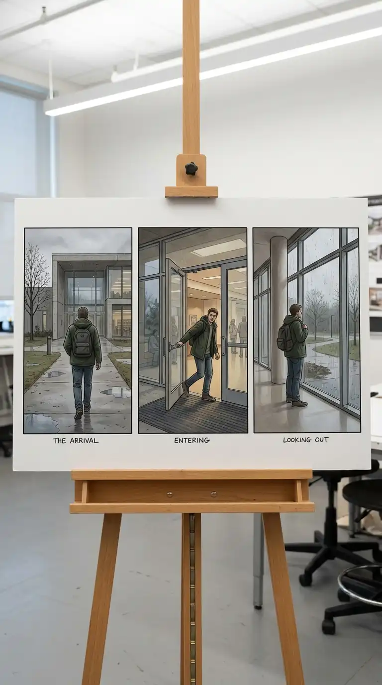 An architecture presentation board is not a portfolio. A portfolio is a collection of work. A board is an argument. It has a thesis, evidence, and a conclusion. The best boards are not comprehensive — they are selective. They leave things out. They focus on what matters.