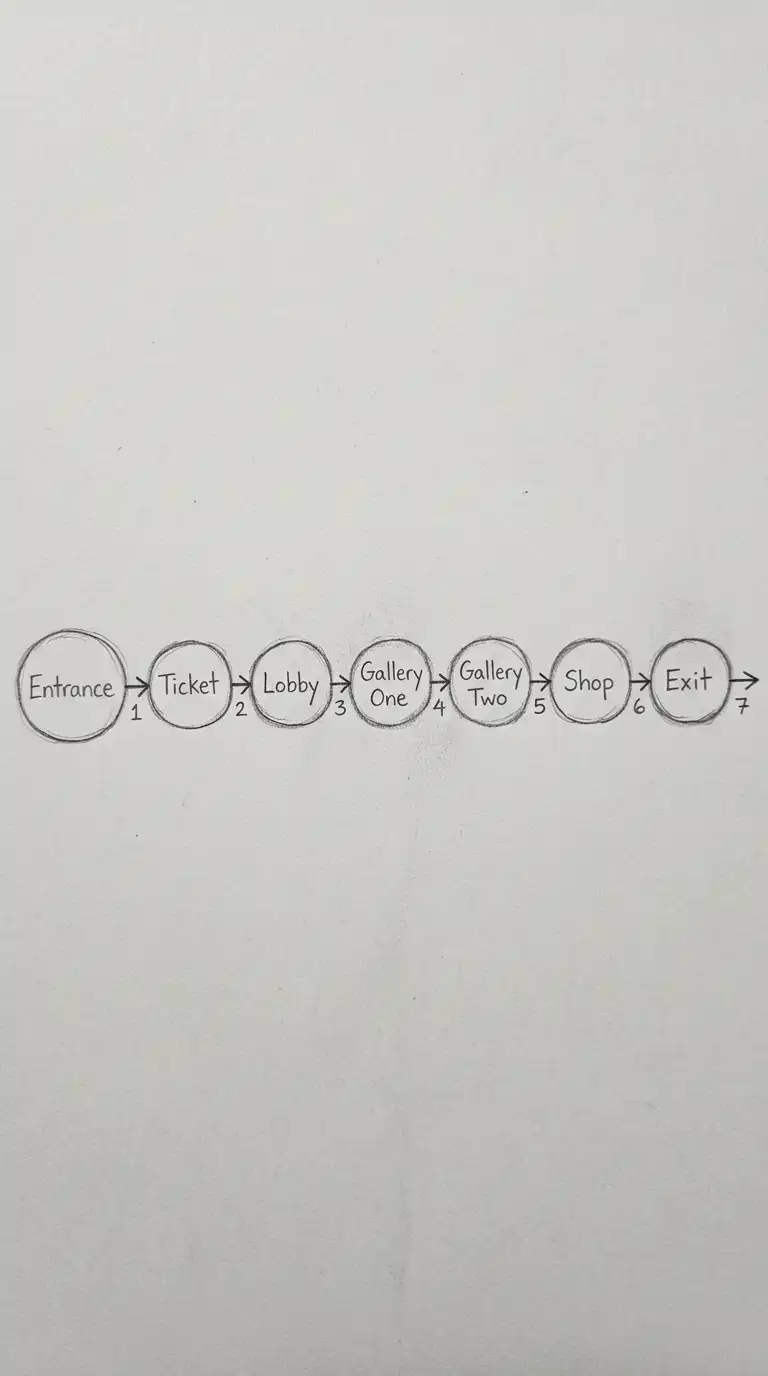 This diagram answers: in what order will spaces be experienced? The emotional effect is narrative, sequential, and experiential.