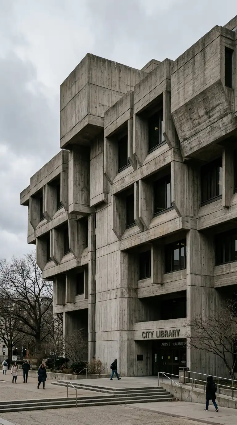 Brutalist architecture made board-formed concrete famous. The facade has no cladding, no paint, no ornament — just concrete, exactly as it came out of the forms. The emotional effect is honest, heavy, and sculptural.