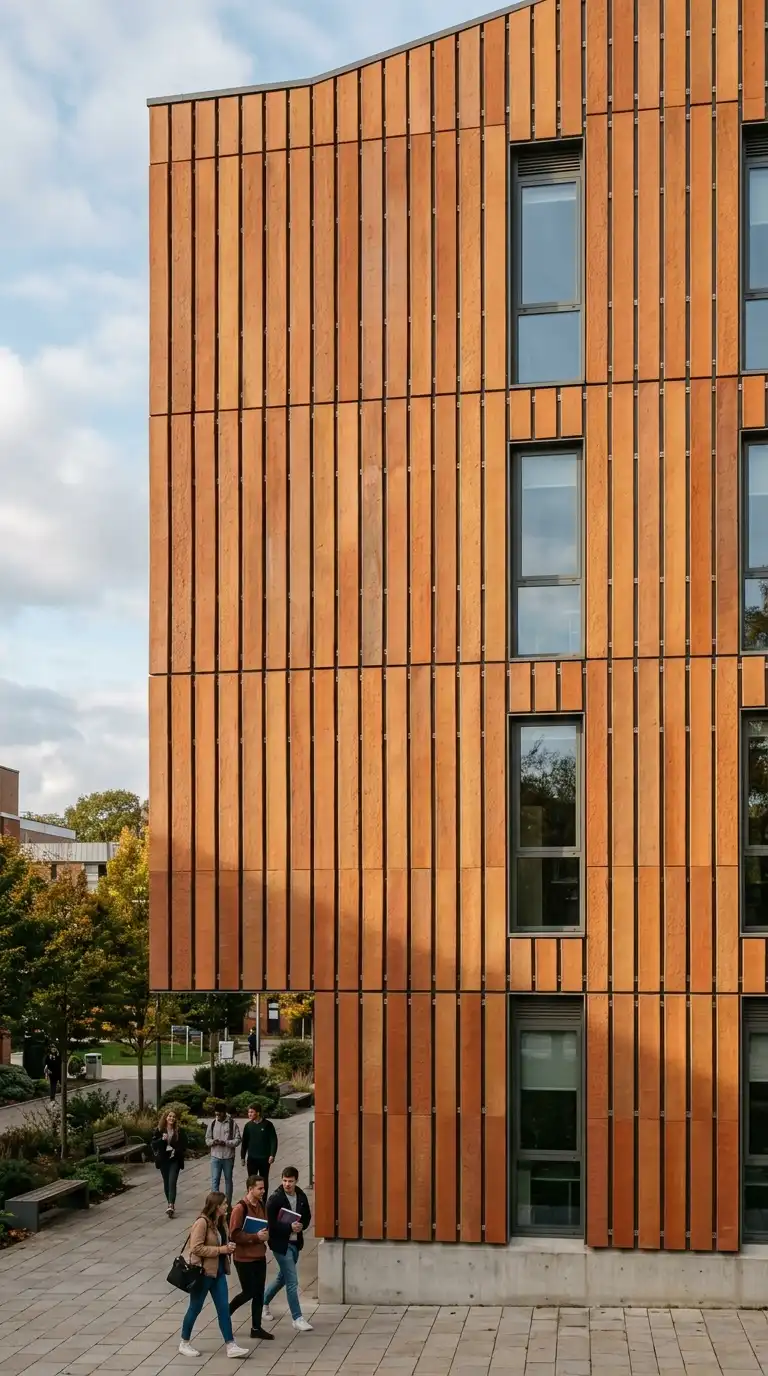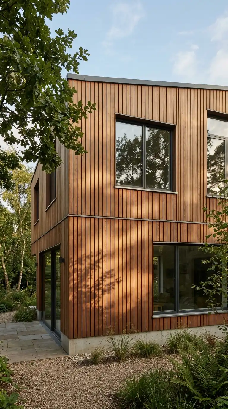 The emotional effect is warm, natural, and biophilic. Timber facades age beautifully if detailed correctly — silver-grey if left untreated, rich brown if maintained.