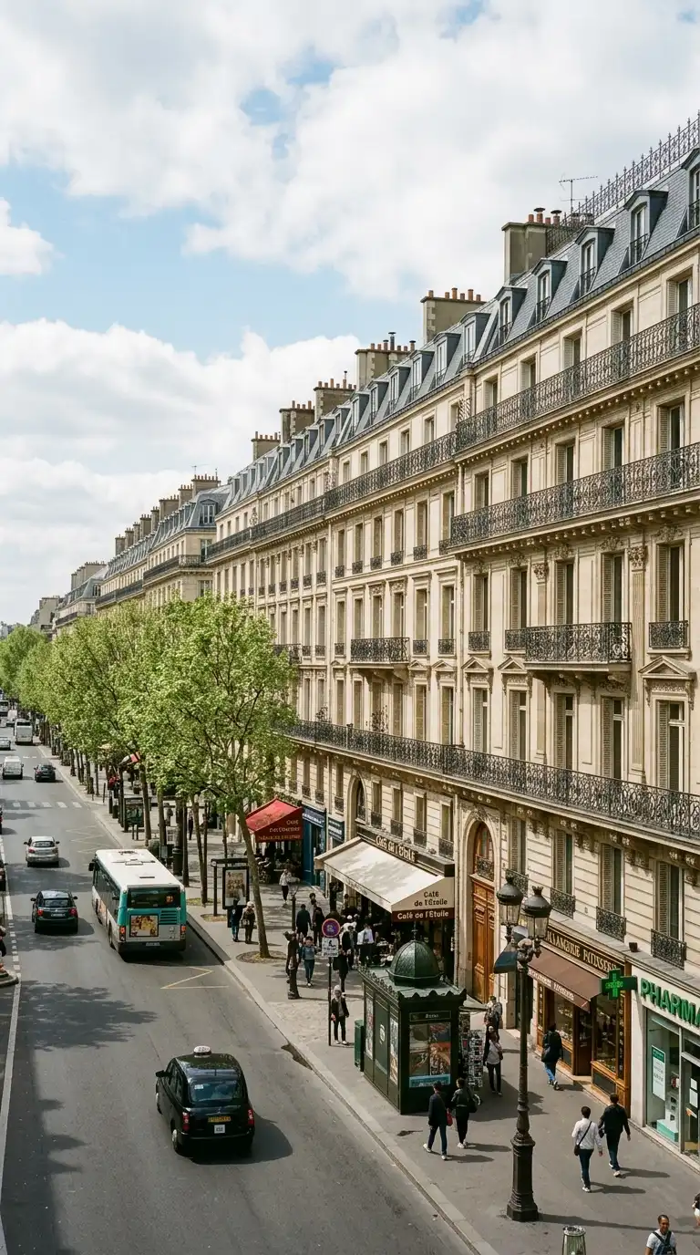 The Haussmannian apartment building is the typical Parisian building. The facade is stone. The windows are tall. The roof is mansard. The balconies are cast iron. The Haussmannian building is uniform, elegant, and urban.