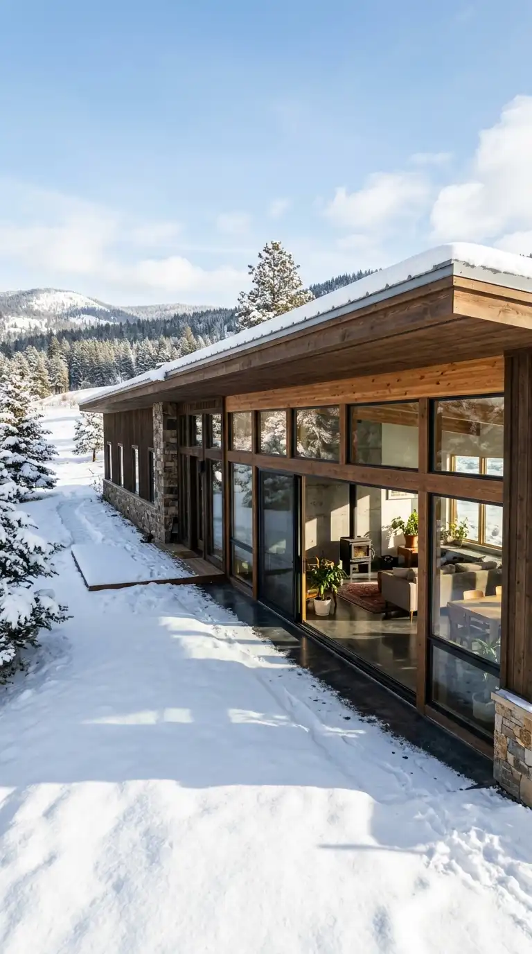 This design is ideal for sloped sites and extreme climates. The emotional effect is protected, mysterious, and deeply grounded.