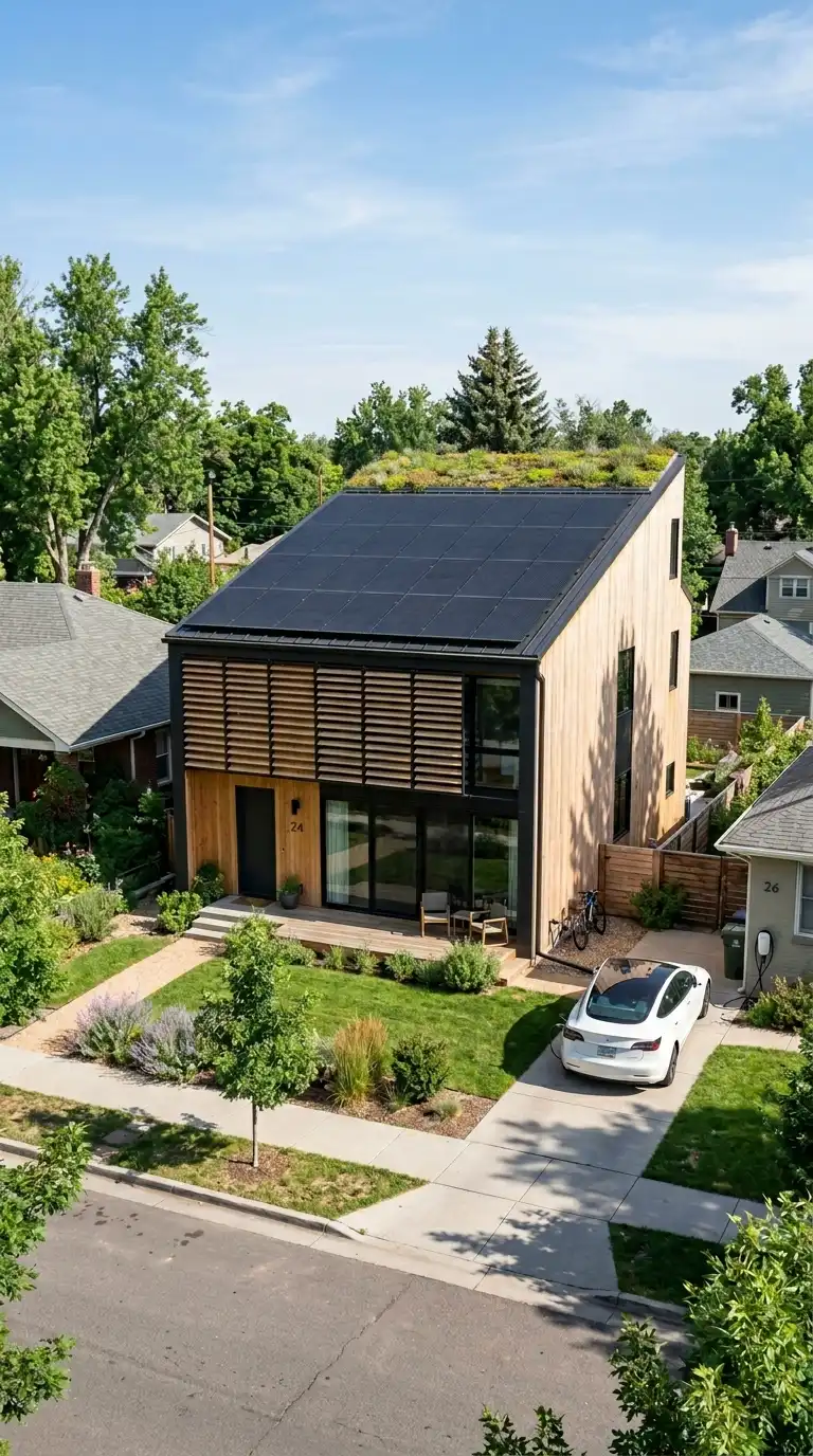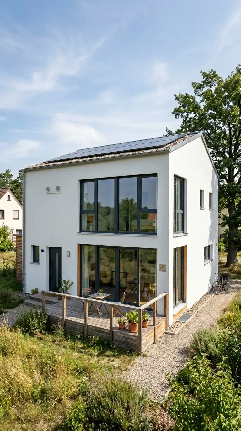 This design is ideal for any climate with adequate sun. The emotional effect is responsible, efficient, and future-proof.