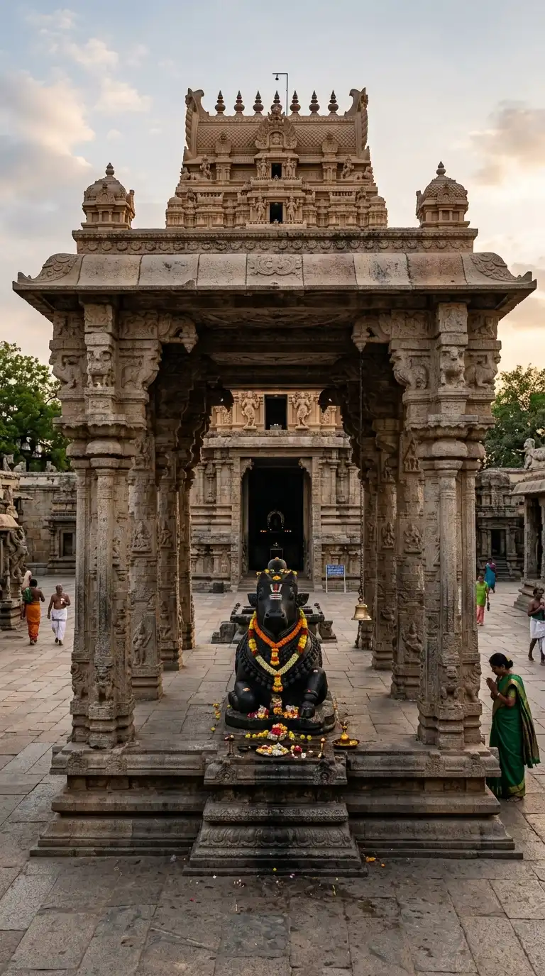 • The mandapa must contain a stone bull (Nandi).
