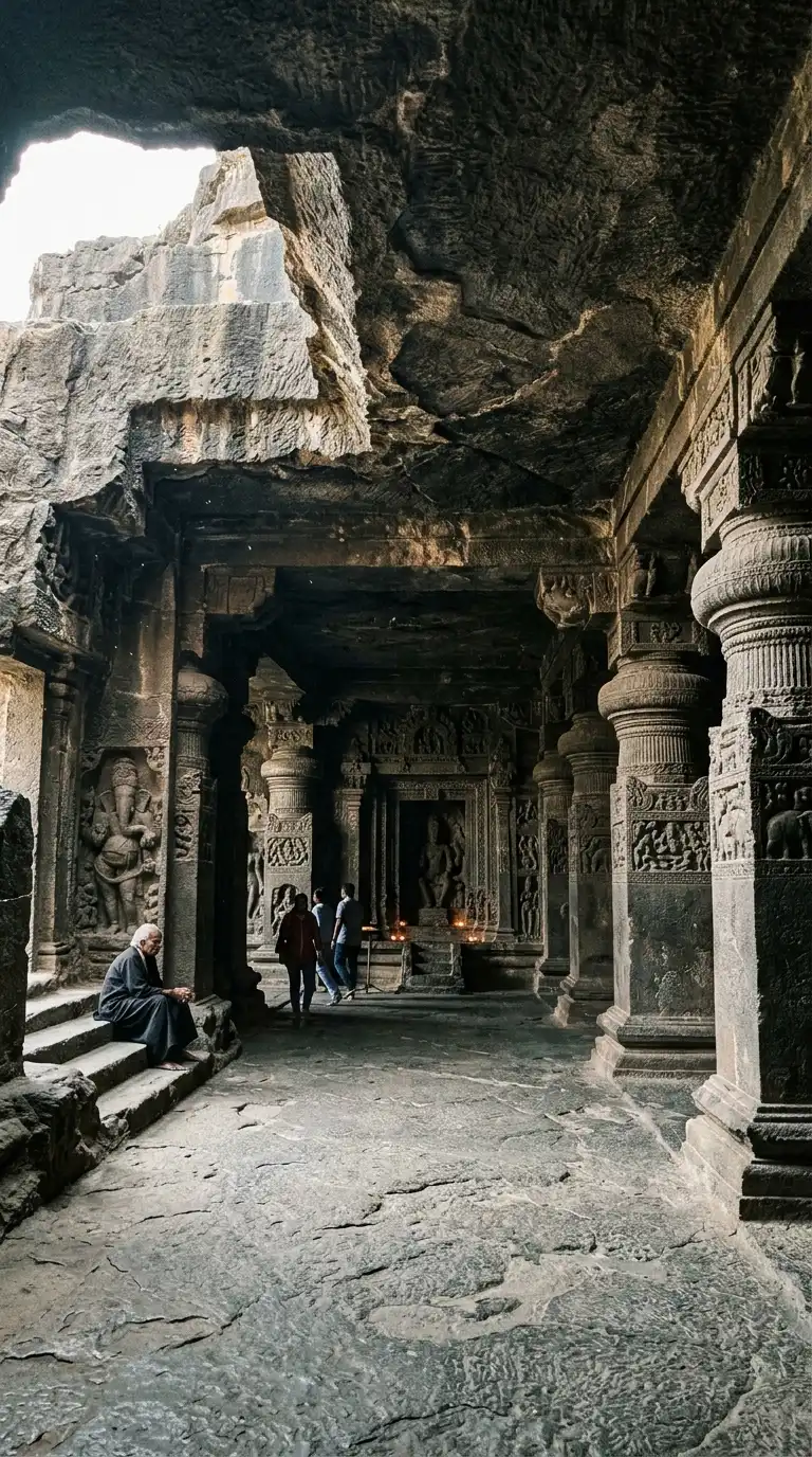 The rock-cut temple is carved from a single rock. The temple is excavated from the top down. The rock becomes the building. The rock-cut temple is monolithic, carved, and subterranean. The Kailasa Temple at Ellora is the defining example.