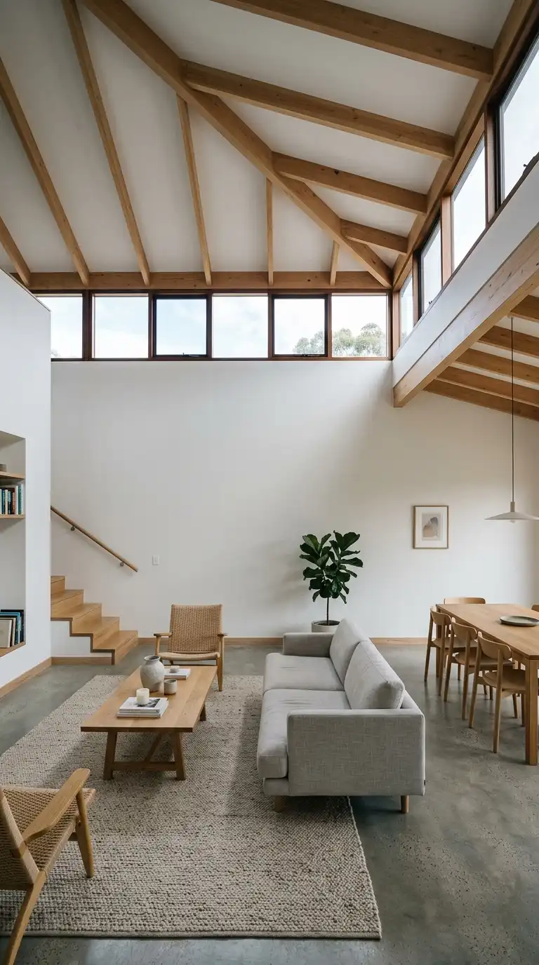 The clerestory house has no windows at eye level. All light enters from above through a band of clerestory windows. The walls are solid and private. The light is even and shadowless. The clerestory house is calm, private, and top-lit.