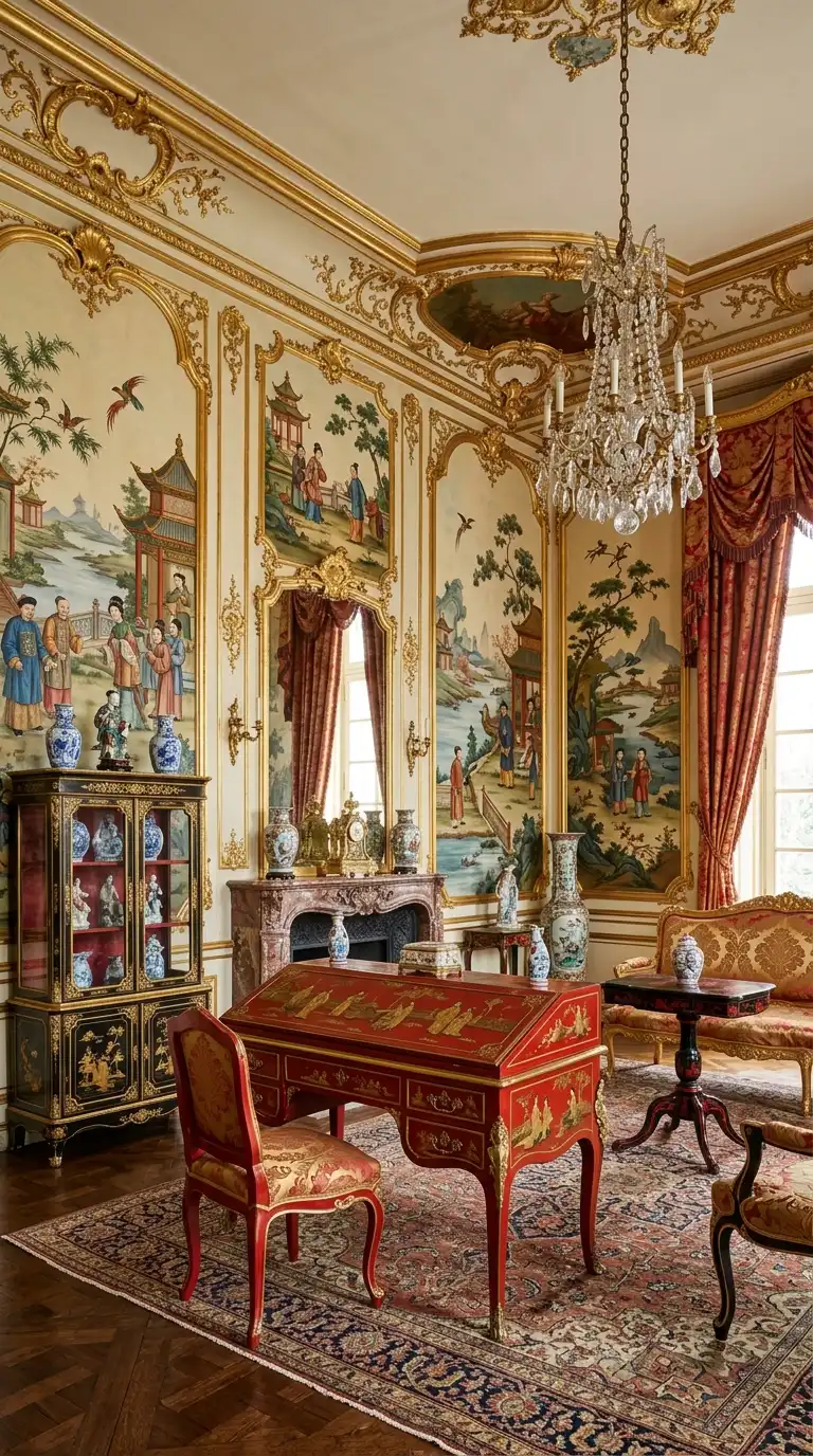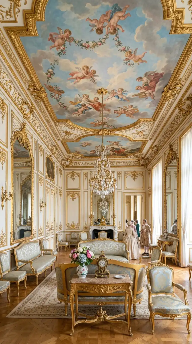 The salon is the heart of the Rococo interior. The walls are panelled in white and gold. The ceiling is painted with clouds and cherubs. The mirrors reflect the light. The furniture is curved and gilded. The salon is light, playful, and social.