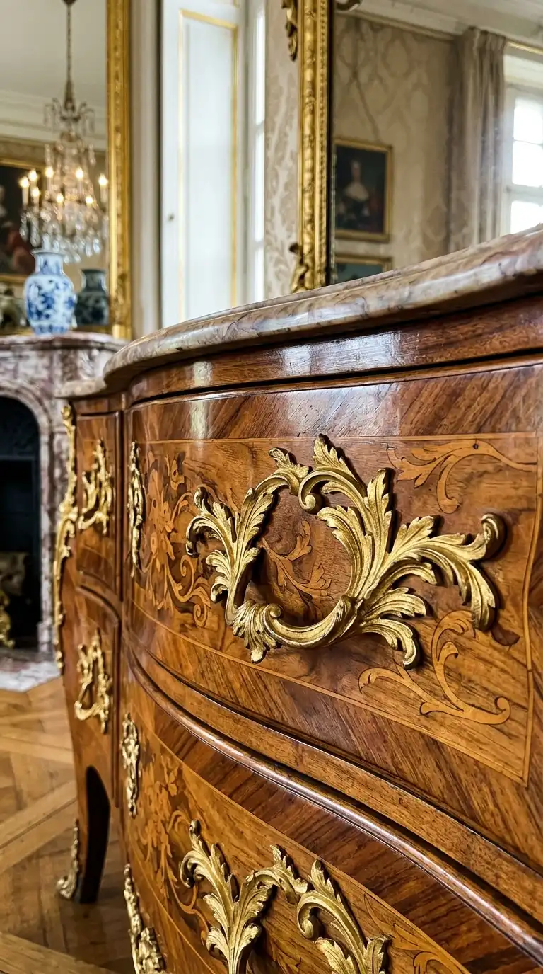 Ormolu is gilded bronze used for furniture mounts, door handles, and clock cases. Ormolu is cast in curving, organic shapes — shells, leaves, and scrolls. Ormolu is gilded, bronze, and curving.