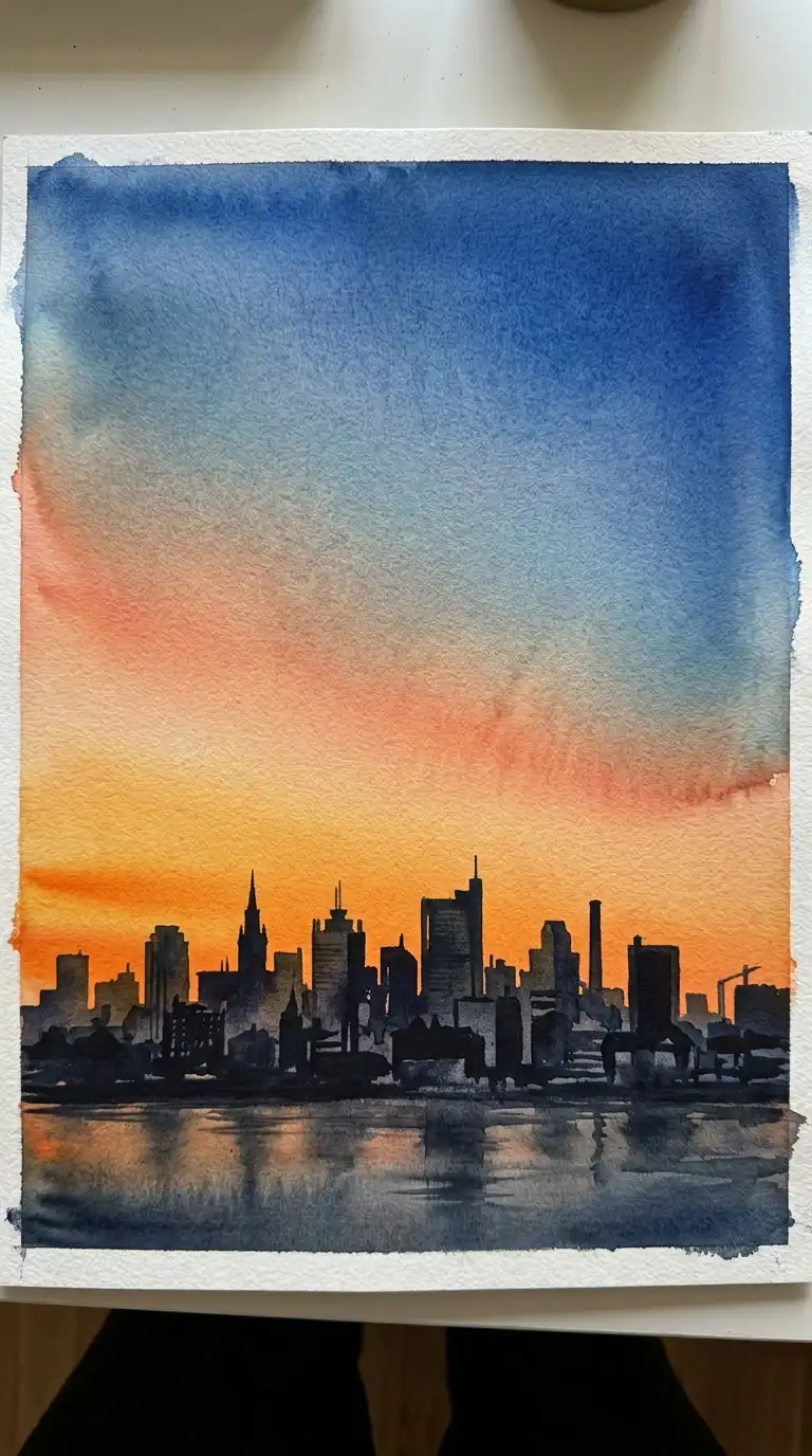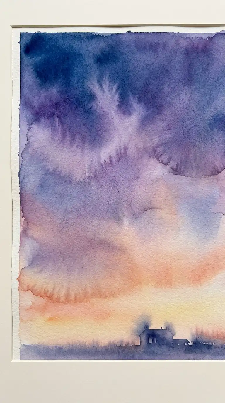 Wet-on-wet technique is essential. Wet the paper first, then drop in pigments. Let the colours bleed and bloom. The emotional effect is dramatic, moody, and atmospheric.
