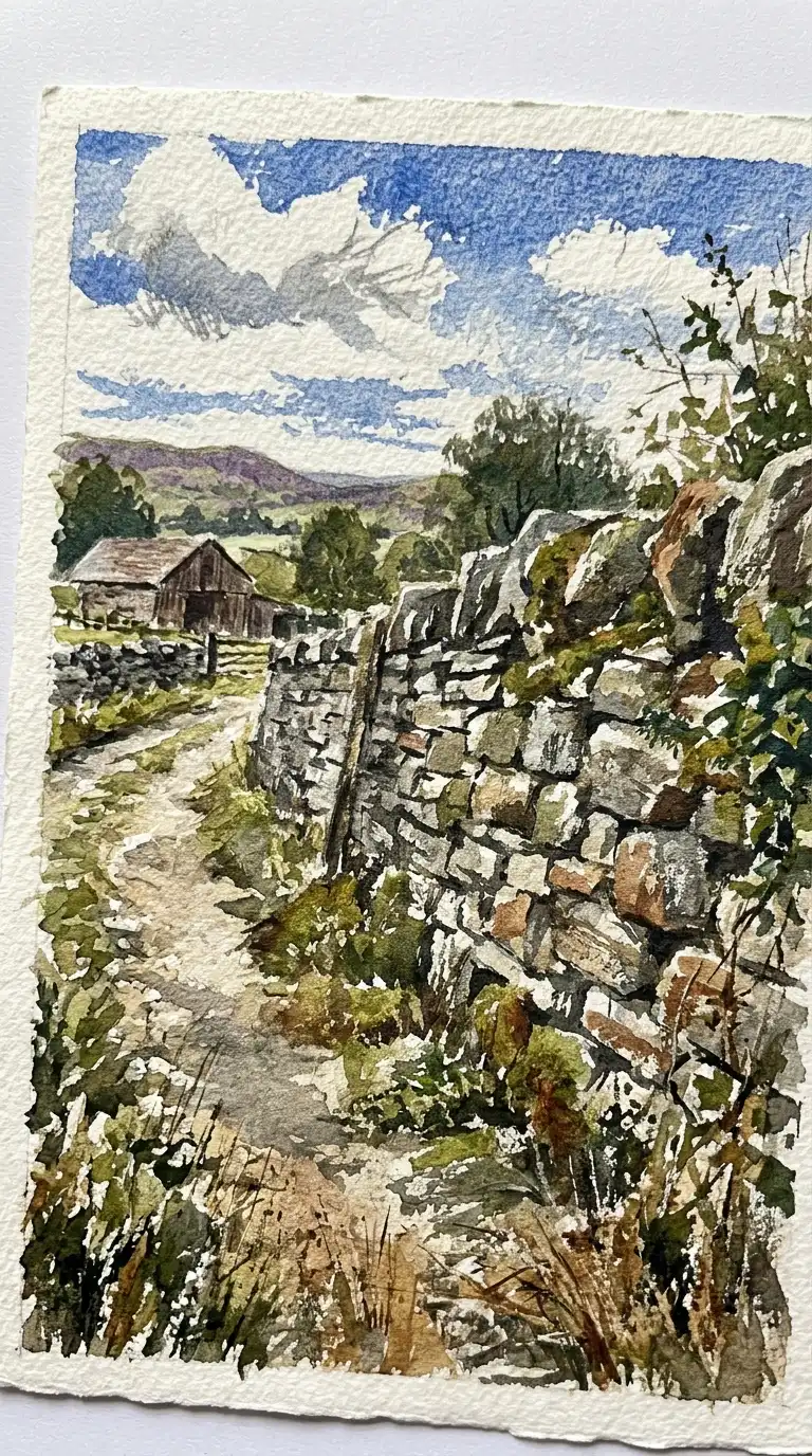 The dry brush technique uses very little water. The brush is almost dry. The pigment catches on the texture of the paper, leaving a broken, textured mark. Dry brush is ideal for rough materials: stone, brick, timber, concrete.
