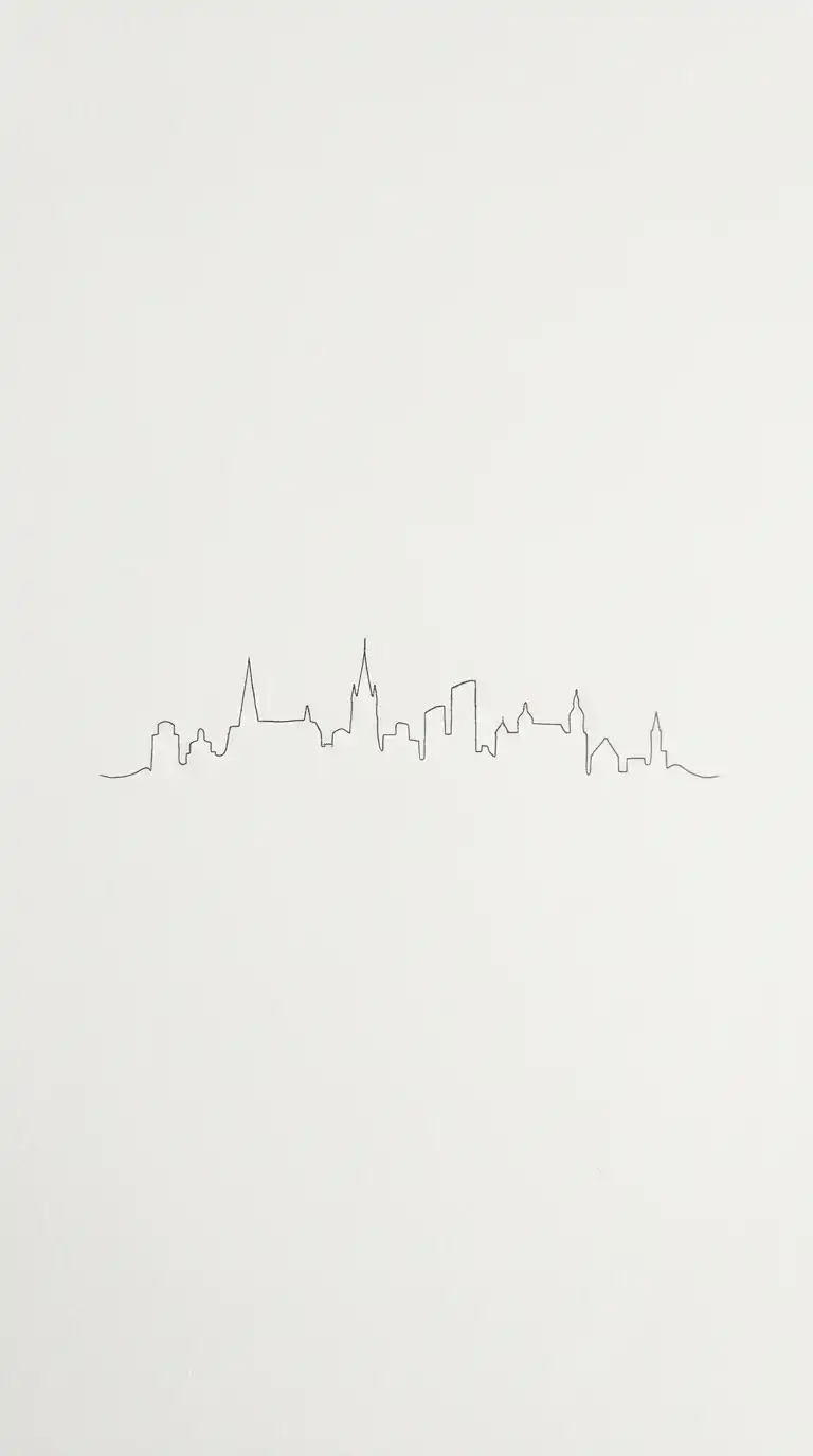 The minimalist line drawing wallpaper is a single continuous line or a few parallel lines. The drawing is simple, abstract, and architectural. A single line might suggest a skyline, a section, or a column.