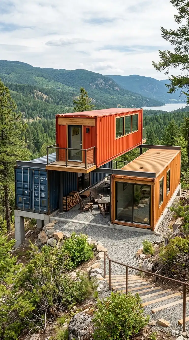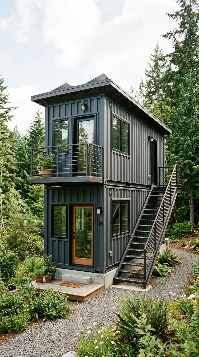 The offset container house stacks containers but offsets them. The upper container is shifted sideways or backward. The offset creates cantilevers, balconies, and covered spaces. The offset container house is dynamic, cantilevered, and sculptural.