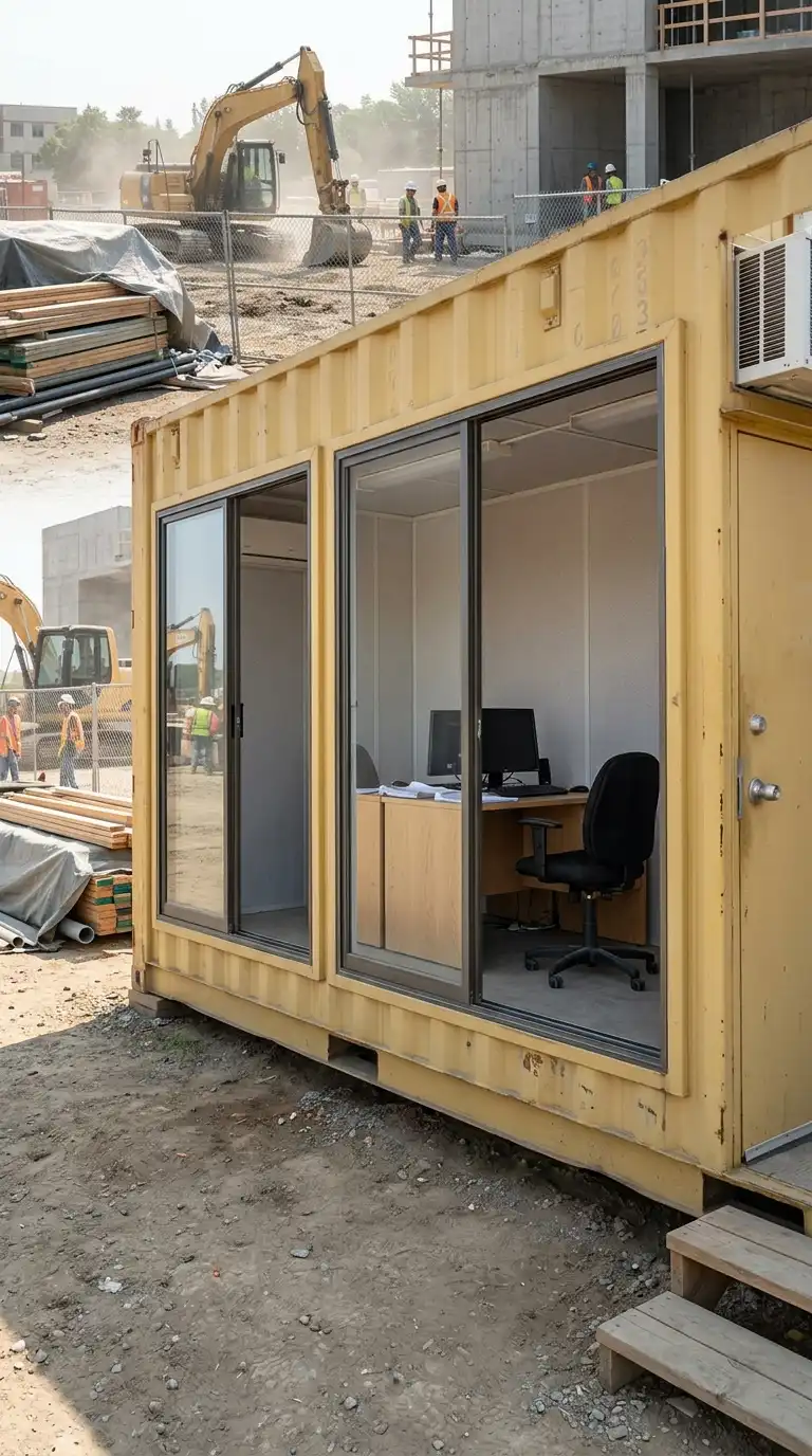 This design is ideal for construction site offices, start-ups, and remote work. The emotional effect is cheap, fast, and portable.