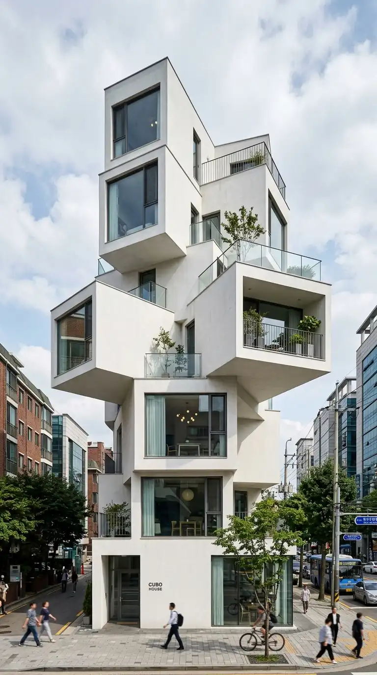 The stacked boxes house is a composition of stacked rectangular volumes. Each box is a different size or orientation. The boxes cantilever and rotate. The stacked boxes house is playful, sculptural, and dynamic.