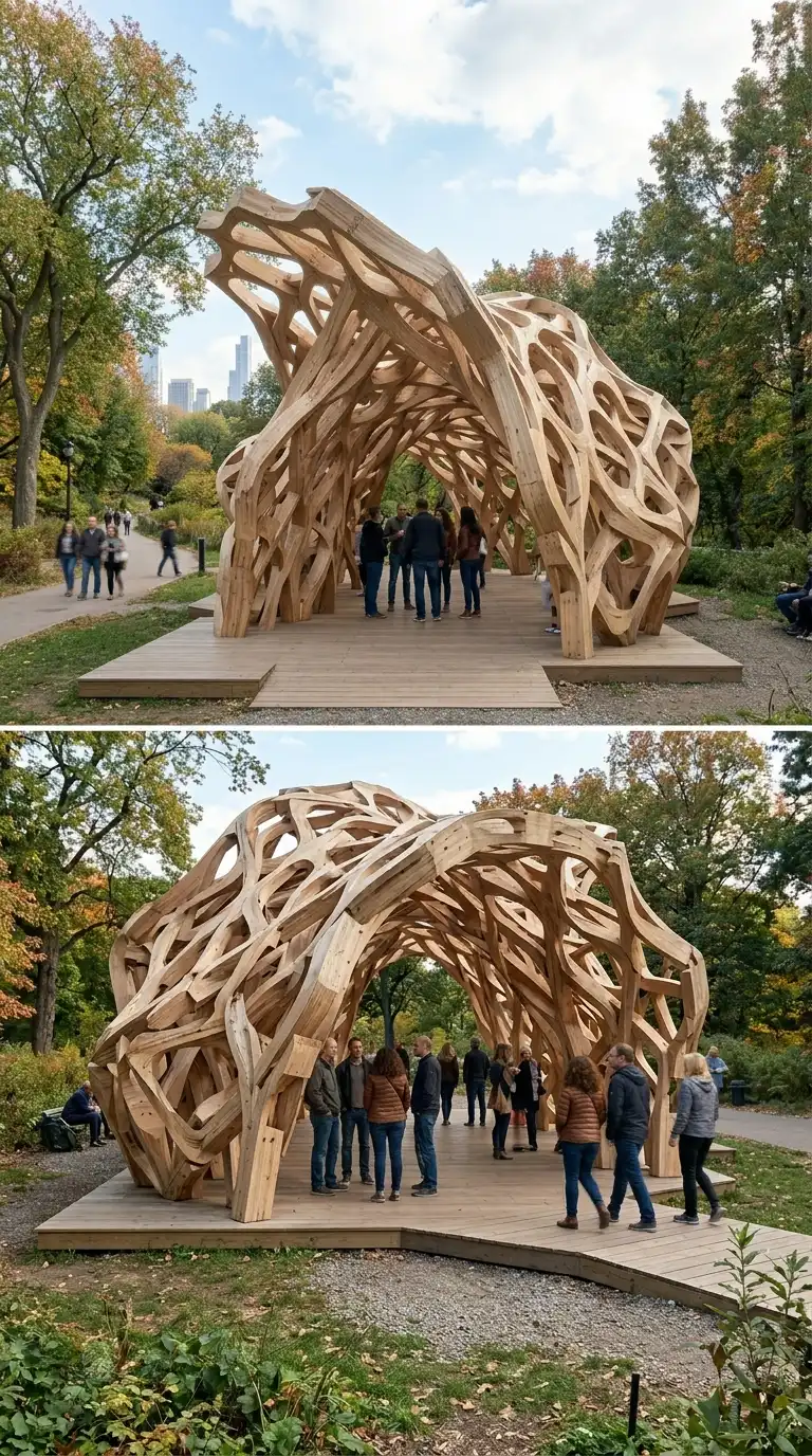 The parametric pavilion is a temporary structure generated by algorithm. The form is complex, non-repetitive, and organic. The pavilion is a showcase for digital design and fabrication. The parametric pavilion is complex, algorithmic, and temporary.