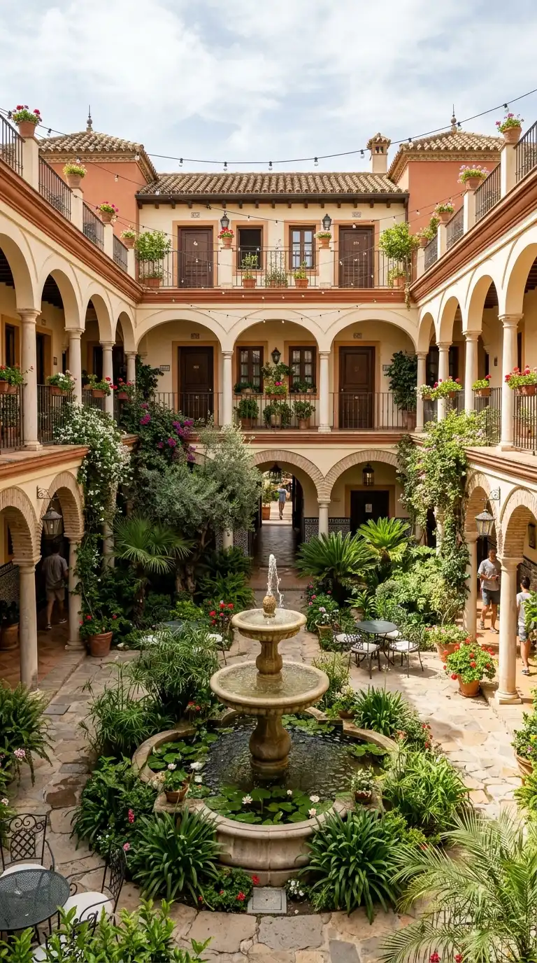 The courtyard hotel wraps guest rooms around a central outdoor courtyard. The courtyard is a garden with a fountain, seating, and sometimes a pool. The courtyard is the heart of the hotel. The courtyard hotel is private, shaded, and garden-centred.