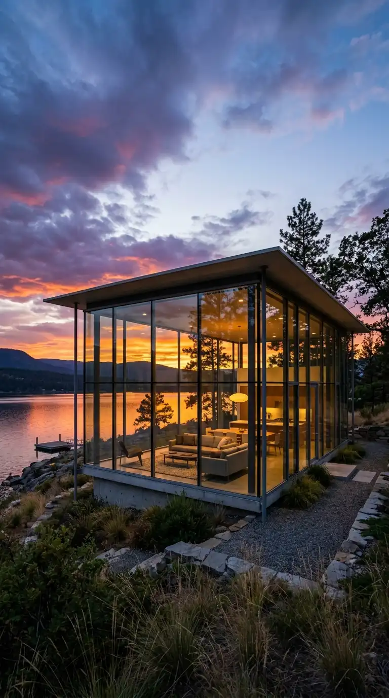 The glass box house is the purest expression of modernism. Walls disappear. Interior and exterior merge. Light fills every space. Structure is minimal — thin columns, steel beams, flush details. This design works only on private sites where neighbours cannot see in and the view is worth seeing.
