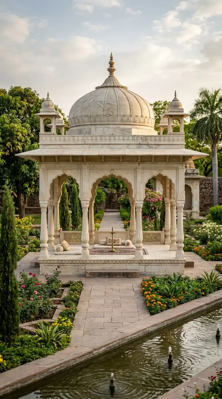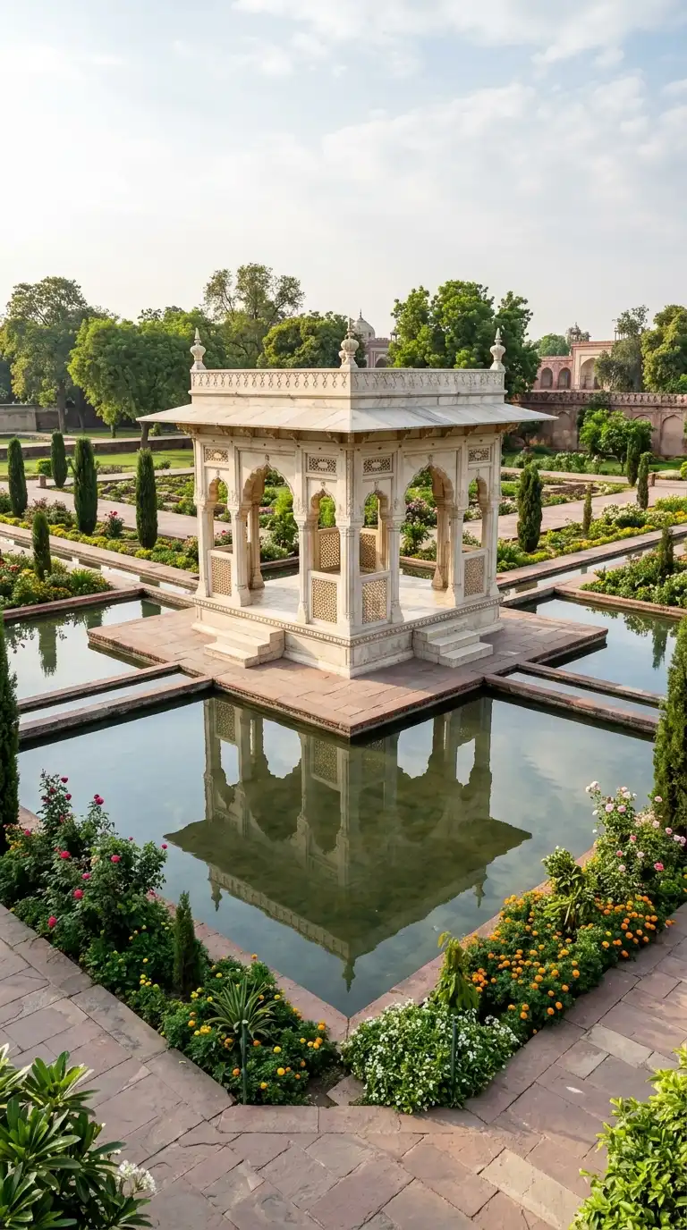 The pavilions in the Shalimar Gardens, Lahore, are defining examples. The emotional effect is open, garden-framed, and refreshing.