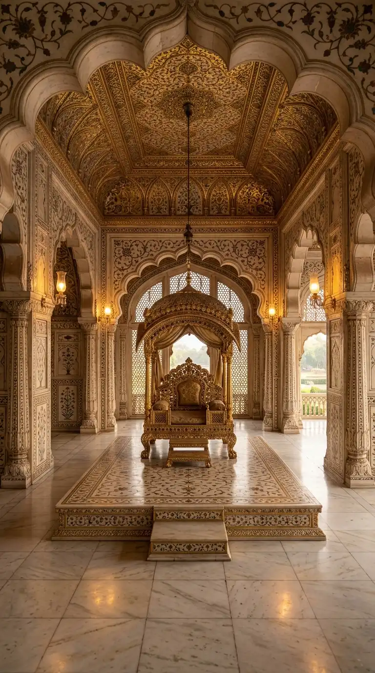 The Diwan-i-Khas in the Red Fort, Delhi, is the defining example. The emotional effect is private, imperial, and luxurious.