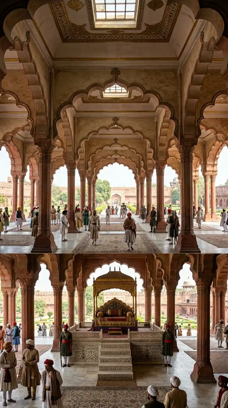 The Diwan-i-Aam in the Red Fort, Delhi, is the defining example. The emotional effect is public, imperial, and accessible.