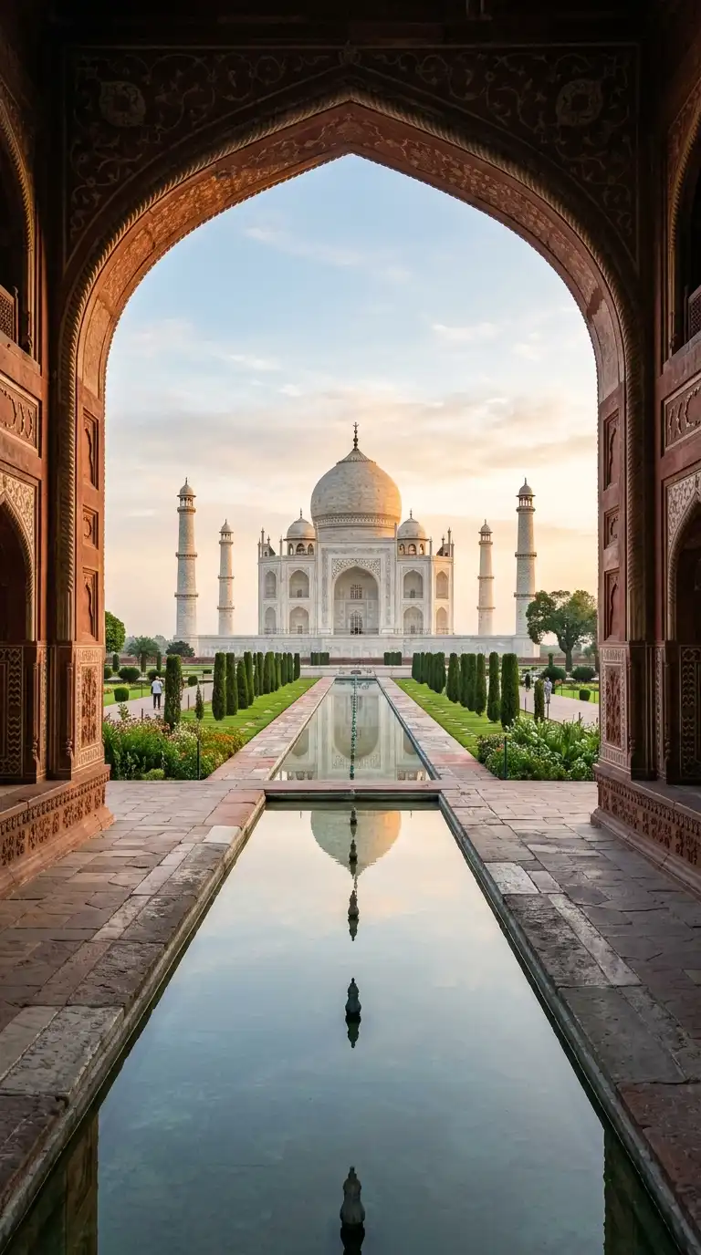 The iwan of the Taj Mahal is the defining example. The emotional effect is axial, monumental, and welcoming.