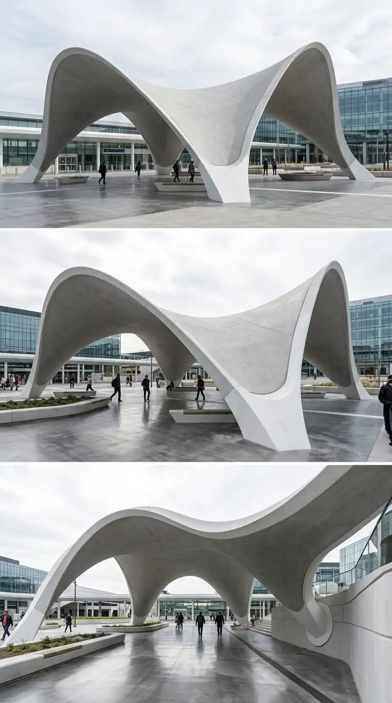 This design type is ideal for pavilions, exhibition spaces, and installations. The emotional effect is seamless, futuristic, and sculptural.