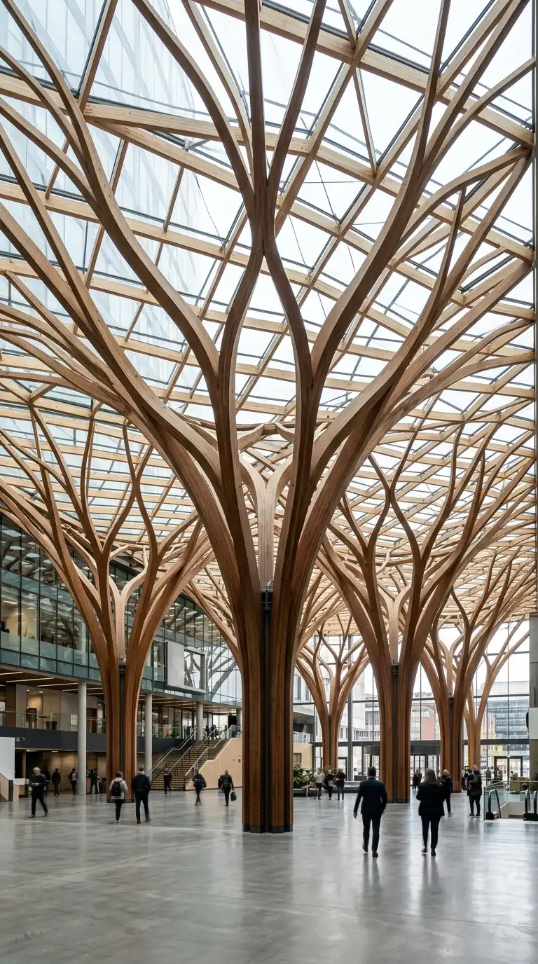 This design type is ideal for atriums, airport terminals, and large-span spaces. The emotional effect is organic, hierarchical, and structural.