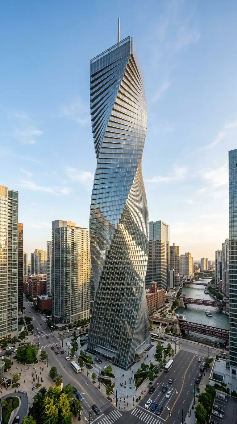 The twist tower is a skyscraper that rotates as it rises. Each floor is rotated slightly relative to the floor below. The total rotation from base to top is typically 90 to 180 degrees. The form is generated by a twist parameter.