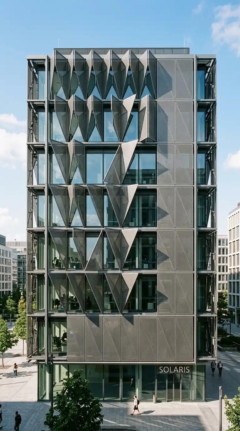 This design type is ideal for buildings requiring active solar control or dynamic expression. The emotional effect is kinetic, intelligent, and alive.