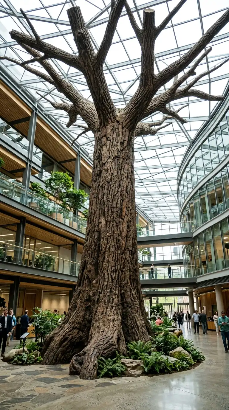 This design is ideal for atriums, lobbies, and forest-inspired buildings. The emotional effect is structural, organic, and forest-like.