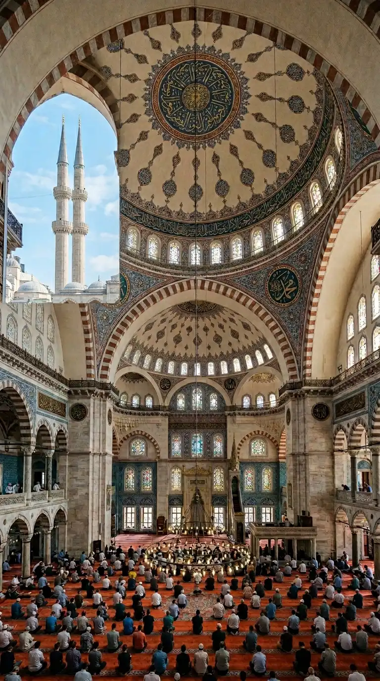This design is ideal for congregational mosques. The emotional effect is celestial, structural, and awe-inspiring.