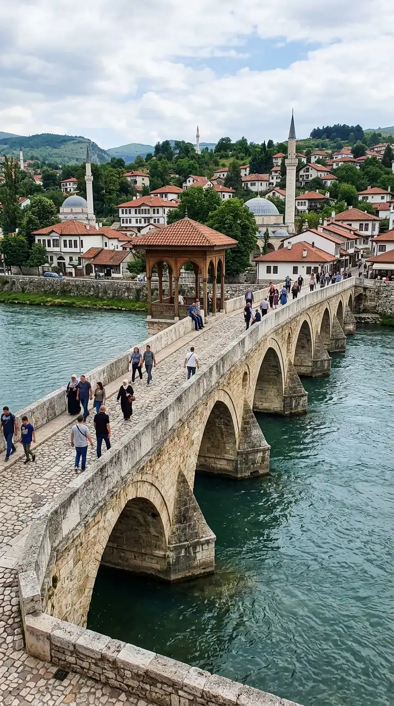 The Ottoman bridge is a stone arch bridge, often with multiple arches. The bridge has pedestrian walkways and sometimes a pavilion at the centre. The most famous is the Mostar Bridge (in Bosnia, built by the Ottomans). The Ottoman bridge is functional, beautiful, and arched.