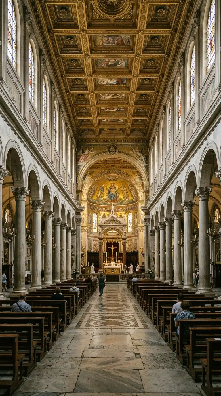 This design is ideal for Catholic cathedrals and large parish churches. The emotional effect is vertical, luminous, and awe-inspiring.