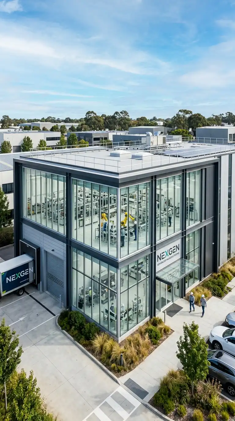 This design is ideal for electronics, pharmaceuticals, and high-tech manufacturing. The emotional effect is transparent, high-tech, and clean.