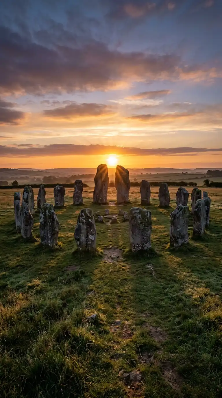 The stone circle is a ring of standing stones. The stones are evenly spaced. The circle is aligned with the sun or stars. Stonehenge is the most famous. The stone circle is a calendar, a temple, a gathering place.