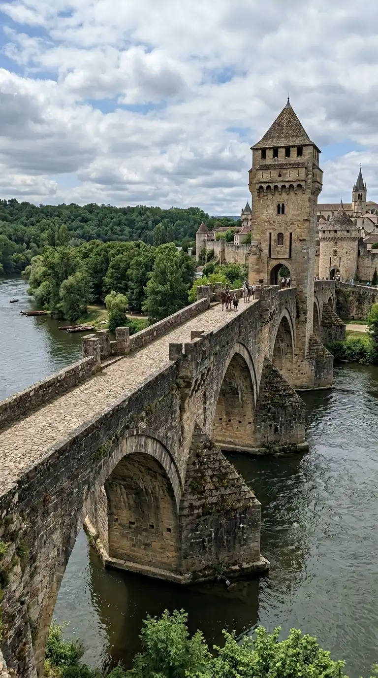 This design is ideal for river crossings and fortified towns. The emotional effect is arched, defensive, and stone.