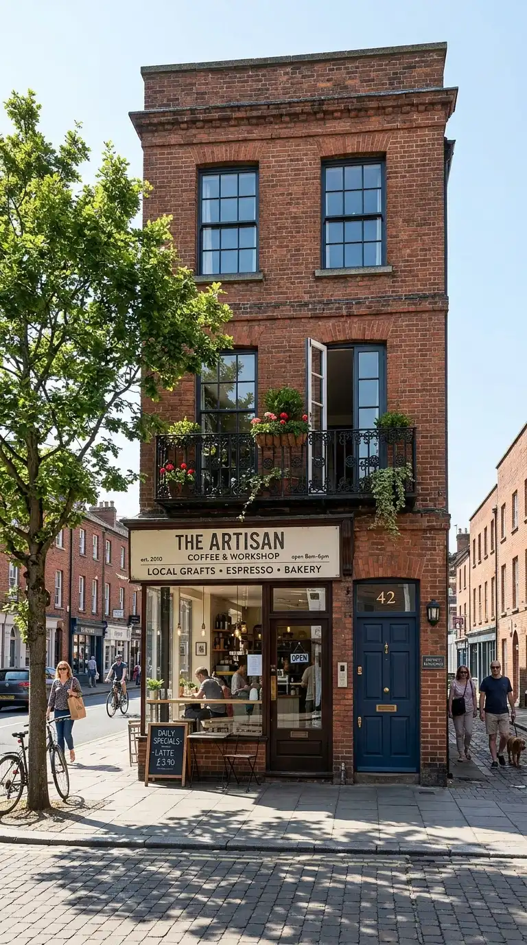 The live-work unit combines a home and a workplace in a single building. The ground floor is commercial: a shop, studio, office, or workshop. The upper floors are residential. Separate entrances keep customers and family separate.