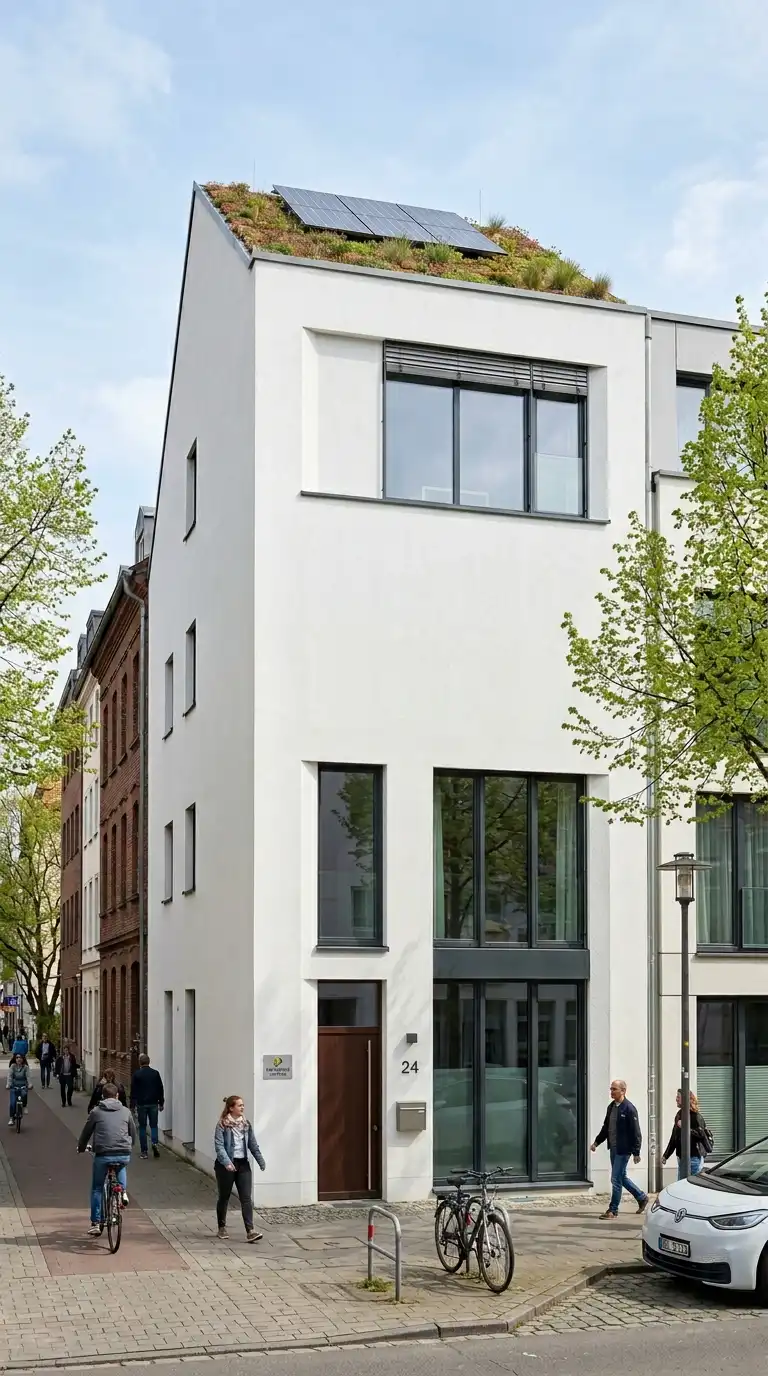 The Passive House townhouse applies the rigorous energy standard to the rowhouse typology. Super-insulation, airtight construction, triple-glazed windows, and mechanical ventilation with heat recovery achieve exceptional energy efficiency.
