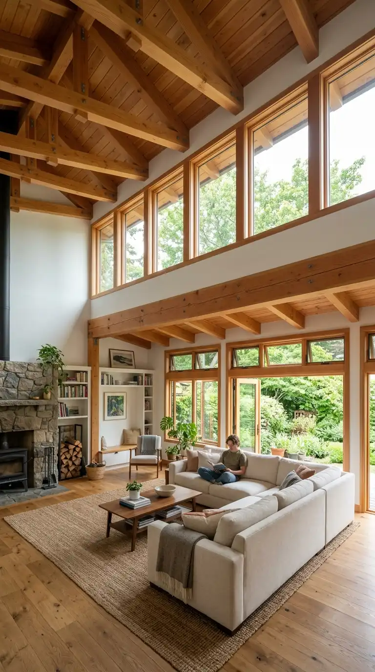 The clerestory house brings light deep into the plan through a band of high windows between a lower roof and a higher roof. The clerestory is often on the north side for even, shadowless light, or on the south side for winter sun.