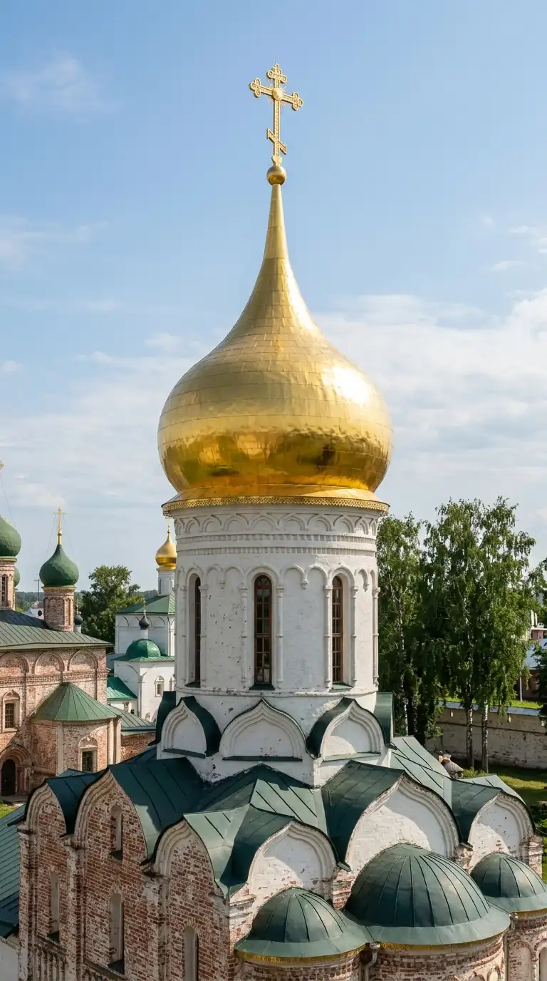 The onion dome is the most recognisable element of Russian architecture. Unlike the shallow Byzantine dome, the onion dome is tall and pointed, like a flame or an onion. It rests on a high drum pierced by windows. The dome is often gilded or painted in bright colours.