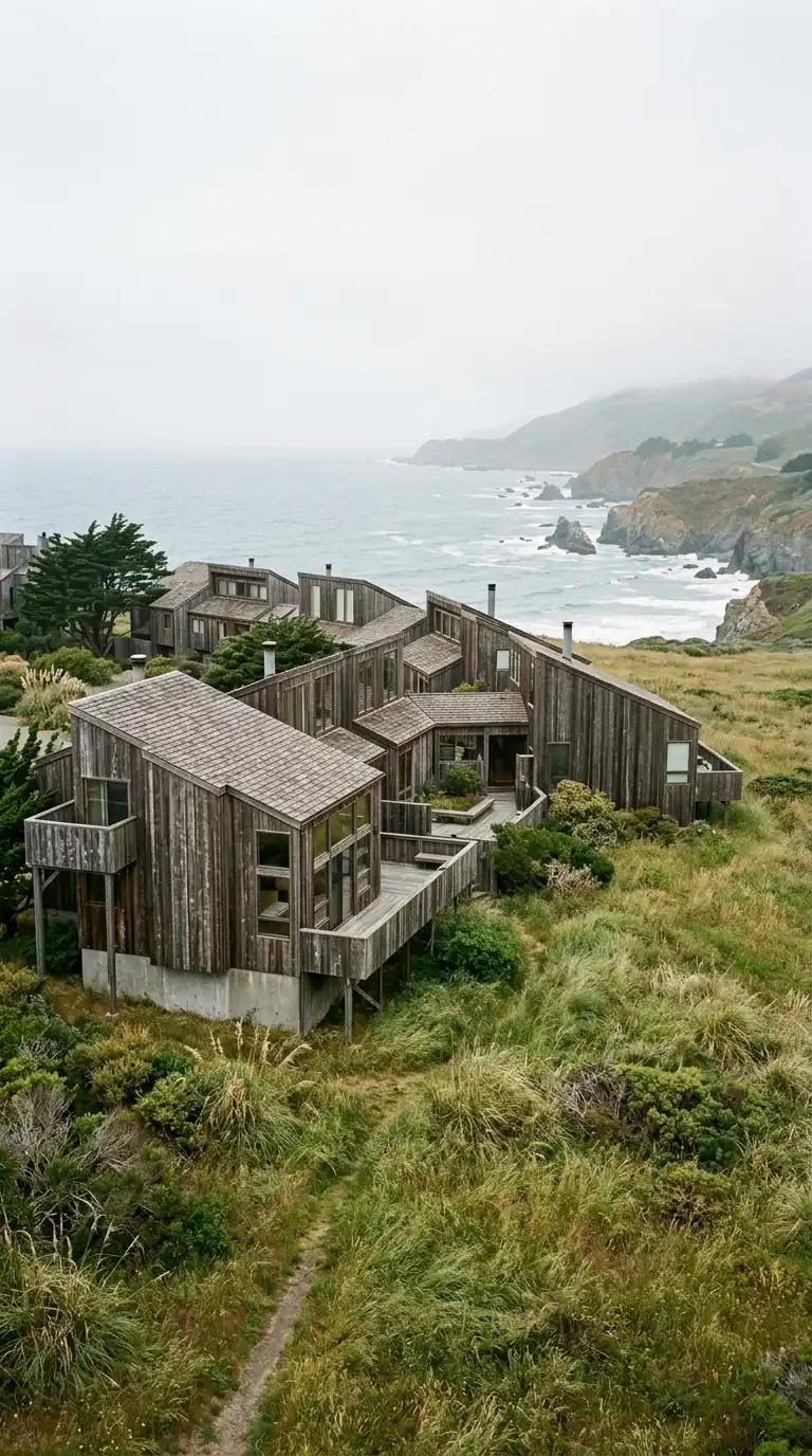 The design grew from a strict site plan that preserved the meadow, protected the bluffs, and limited views from the road. The emotional effect is peaceful, humble, and completely appropriate to the harsh coastal site.