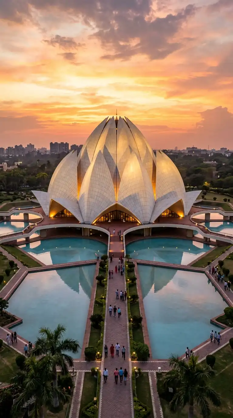 The form is explicitly organic — a lotus, the national flower of India, sacred in multiple religions. The petals are both structure and ornament. The emotional effect is sacred, peaceful, and deeply symbolic.