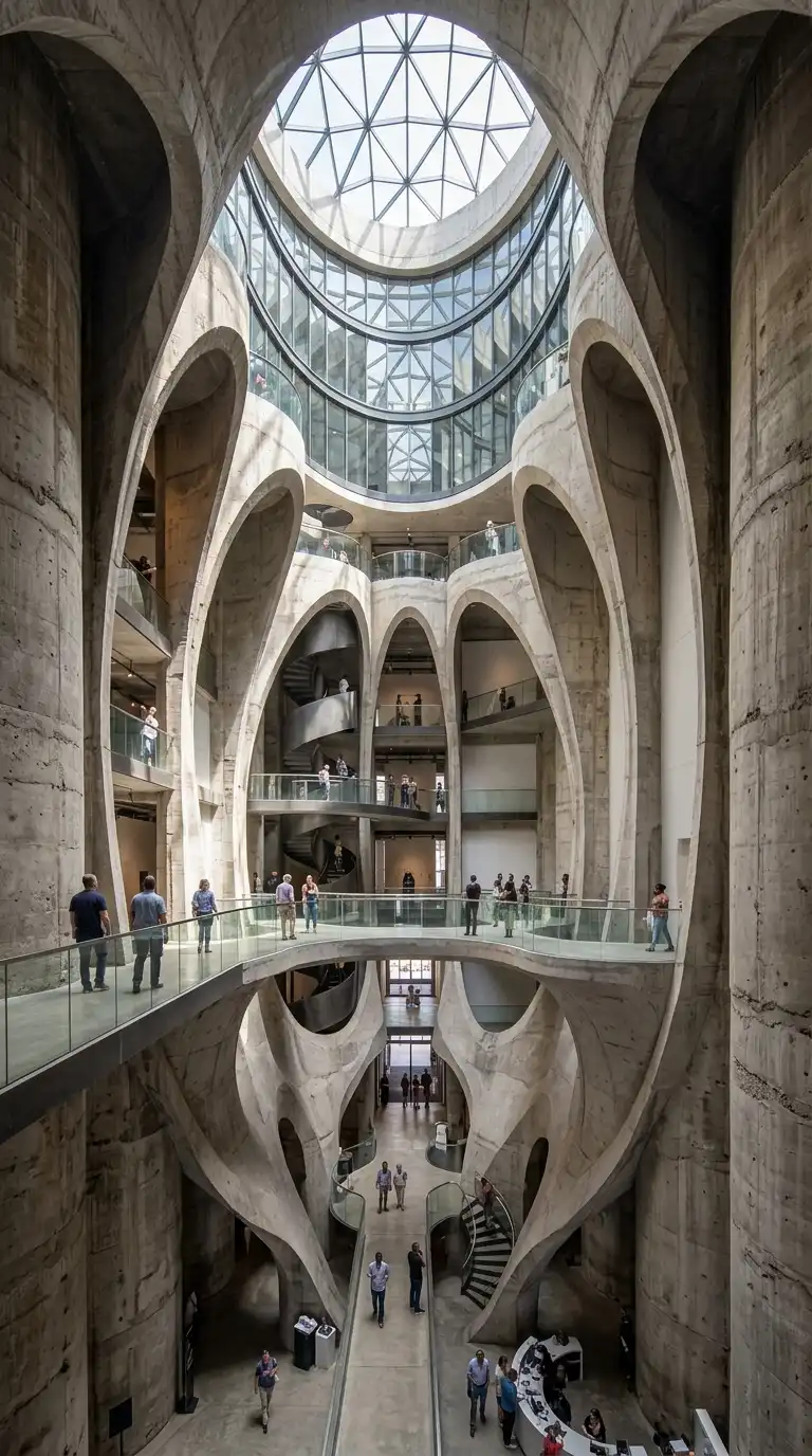 The form is organic in its continuity — it flows like a wave or a ribbon. The building is a single surface folded in space. The emotional effect is fluid, futuristic, and breathtaking.