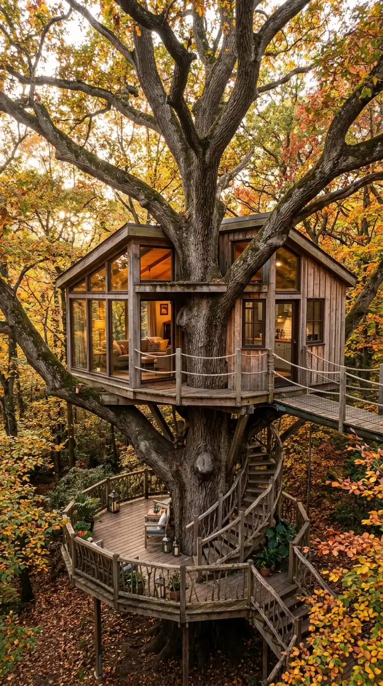 The treehouse is organic architecture at its most literal. The building is wrapped around, supported by, or integrated with a living tree. The tree is not removed to make way for the architecture — the architecture accommodates the tree.