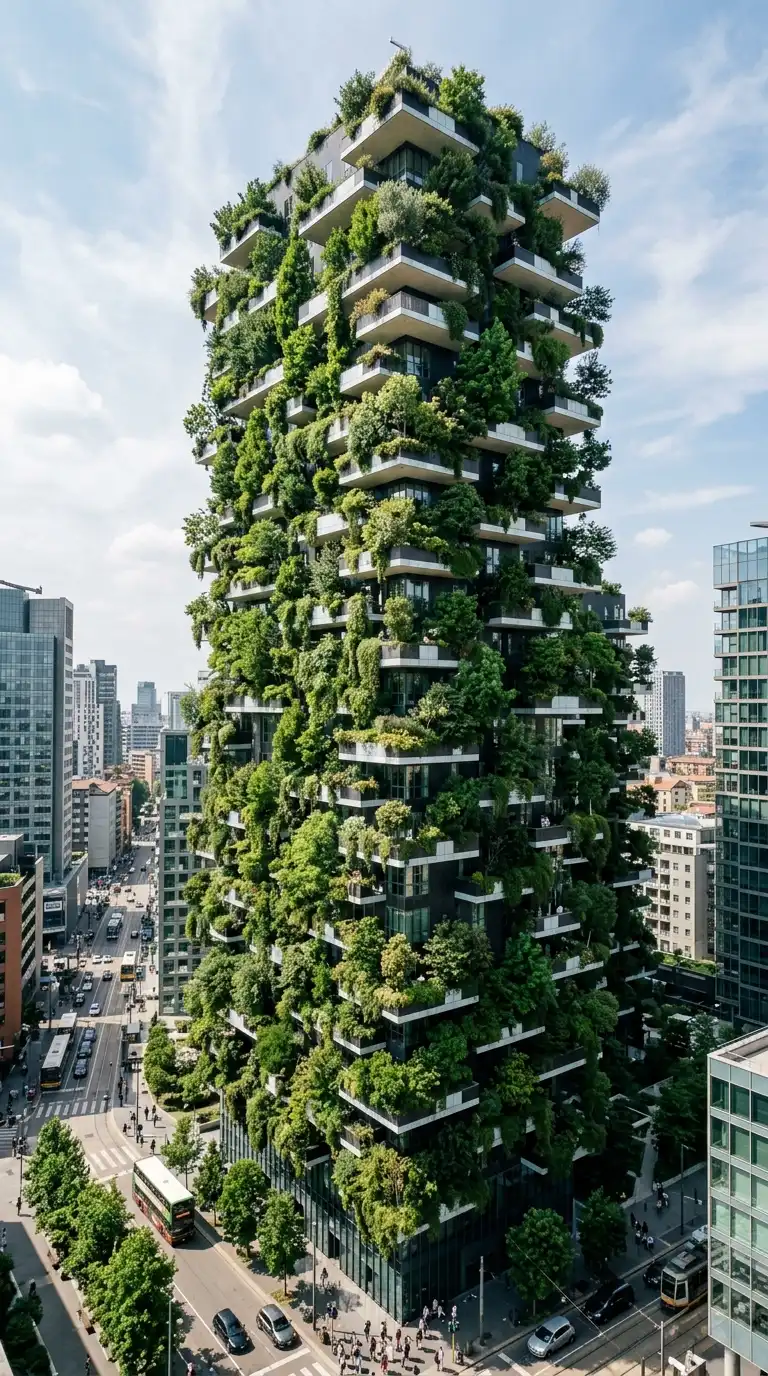 This idea has been realised in the Bosco Verticale in Milan, but futuristic versions imagine entire cities of vertical forests. The emotional effect is green, vertical, and ecologically transformative.
