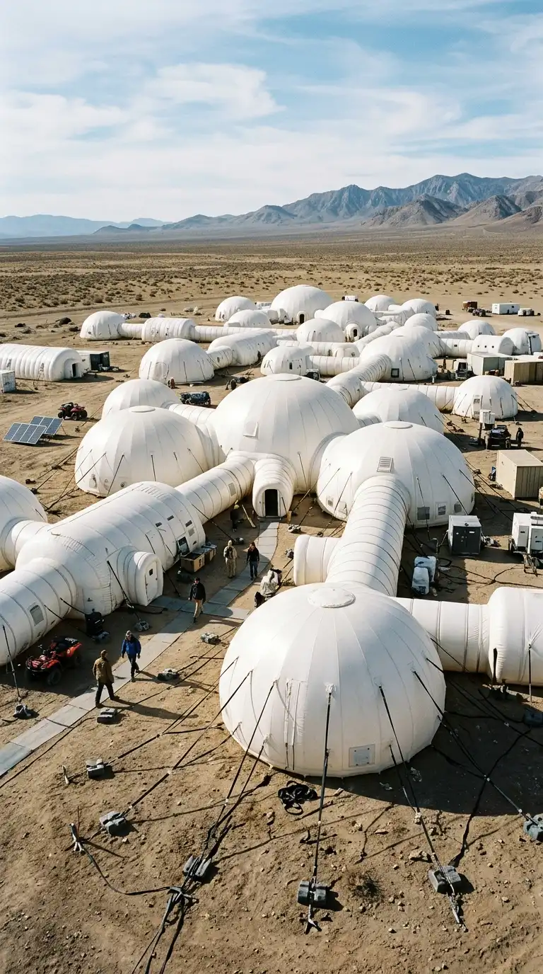This idea is for temporary settlements, disaster relief, or space habitats. The emotional effect is temporary, lightweight, and deployable.