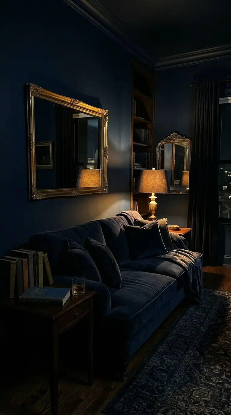 - Vary texture to add interest — matte walls, glossy floor, velvet furniture.