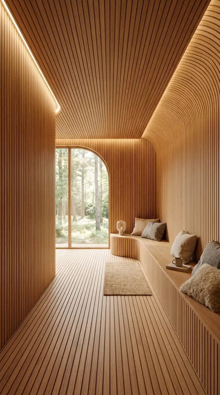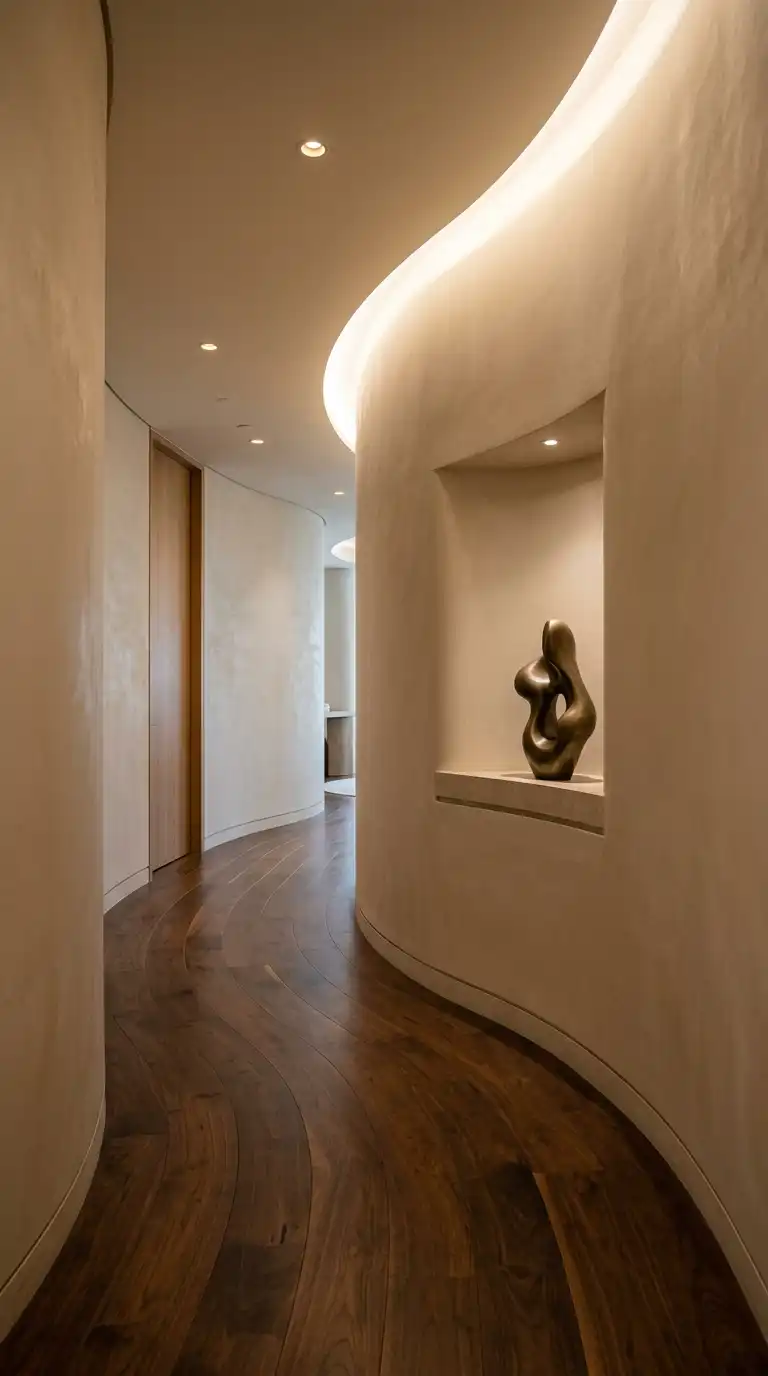 This idea is ideal for hallways, entrances, and feature walls. The emotional effect is soft, flowing, and dynamic.